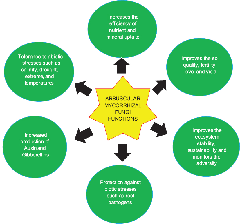 Continuous use of inorganic fertilizers, pesticides, and fungicides has drastically caused havoc to the soil environment, leading to the infertility of soil and also associated with the risk of human health and life [18]. AMF is thought to reduce inorganic chemical use up to 50% for agricultural production; however, the reduced use depends on the species of plants and the stress regime.