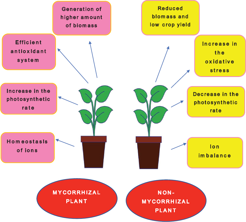 | Figure 2: A diagrammatic representation contrasting the differences of the plants inoculated with mycorrhizal and non-mycorrhizal association. [Click here to view] |