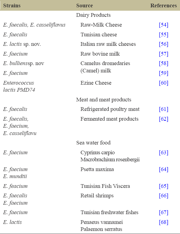 Table 2: Different Enterococcus strains isolated from various sources.